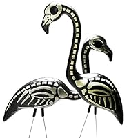 Two (2) Skeleton Yard Flamingos Lawn Decor