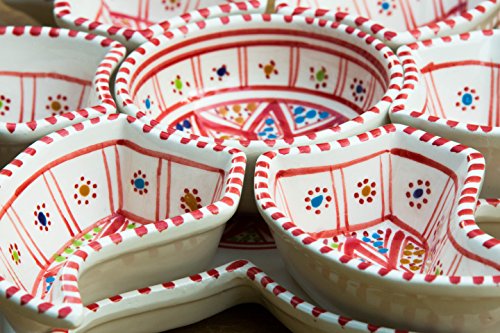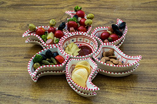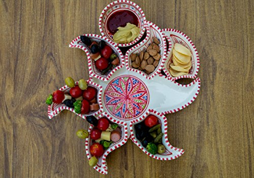 Each of the small dishes can be placed on top of the big plater to create a star shaped design that measures L: 13.5″ x W: 13.5″ x D: 2″. The dish plates set is ideal for serving small hand foods when having people over for a party or get together. The food can be arranged into a unique star design that will bring decoration and flair to any event.