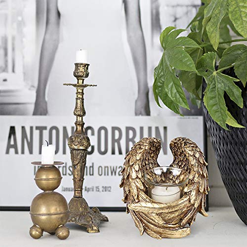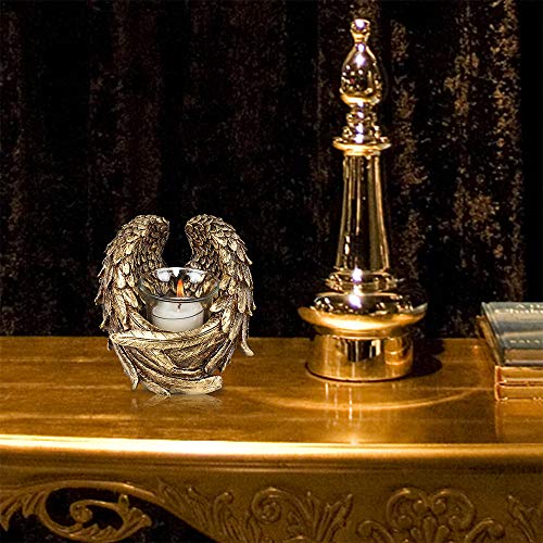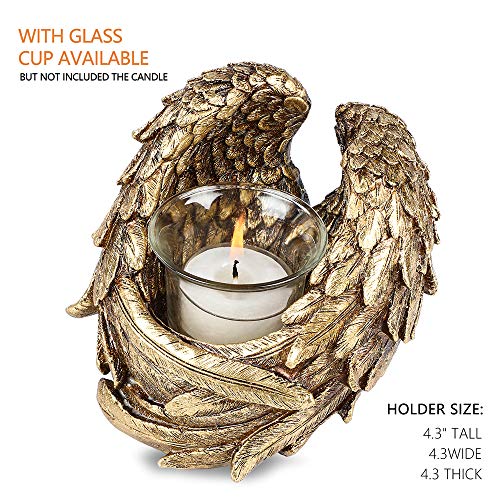 This candle holder features a clear glass cylinder cup with gold angel wings cross that has been lightly distressed for a vintage feel. It adds a glamorous glow and old-time elegant look to any table setting. Great for home decorations, table centerpieces. It is also perfect for Birthday, Weddings, Anniversary, dinner parties, Holidays gifts (Easter Day, Thanksgiving, Halloween, Christmas).