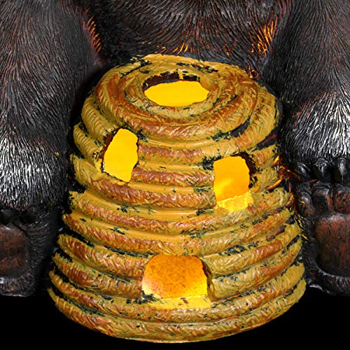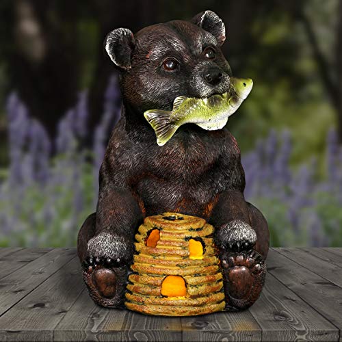 Decorate your living space with a sitting black bear mini figurine catching a fish in its mouth. As the sun sets, turn on the beehive LED lights to your desired hour.