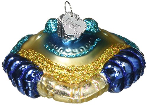 This Blue Crab ornament is hand-crafted, hand-painted and glittered in a series of labor-intensive steps to achieve the beautiful creations. Molten glass is mouth-blown into finely carved molds.