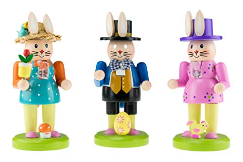 Add magical touch to your home that will brighten up the look of any room and makes a perfect addition to any home’s decor with this fun bunny nutcracker wearing a blue shirt, black pants and featuring a little egg on the ground.