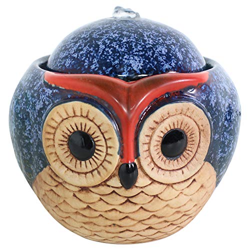 Add a whimsical water feature to your home or office with this indoor ceramic owl tabletop fountain. Made of easy-to-clean ceramic, this fountain features complementing colors of brown and blue to create an attractive decorative indoor accent and an unobtrusive addition to your counter, table, nightstand or desk. It will definitely brighten up any room in your home or in the office.