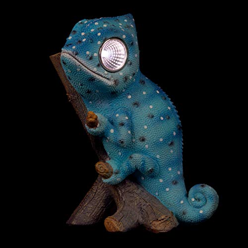 Create your dream garden with this solar chameleon figurine. The eyes automatically light up at dusk, the lovely color that injects life to any outdoor space. This Chameleon Solar Statue is made using rust-resistant resin and is hand-painted for a unique touch and given a protective coating to weather it all.