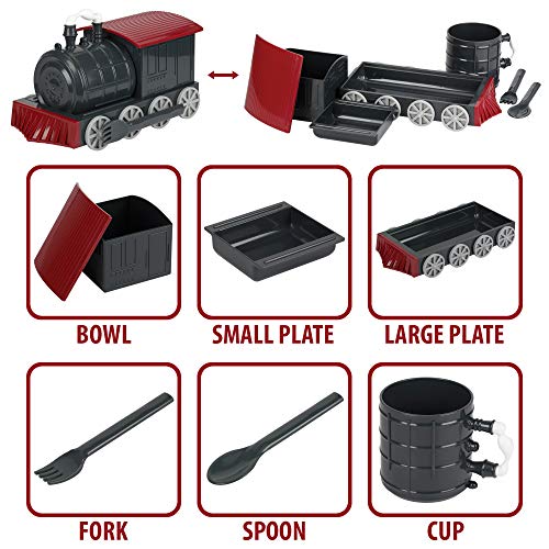 This cute meal set for toddlers and pre-school kids helps to make mealtime fun. It includes 2 divided plates, a cup, bowl and kids utensils sized just right for children. This cute dinner set includes plate with spill-resistant side rims, bowl, shallow tray and lidded compartment for side dishes & desserts, and fork, spoon & round cup with easy-grip handle.