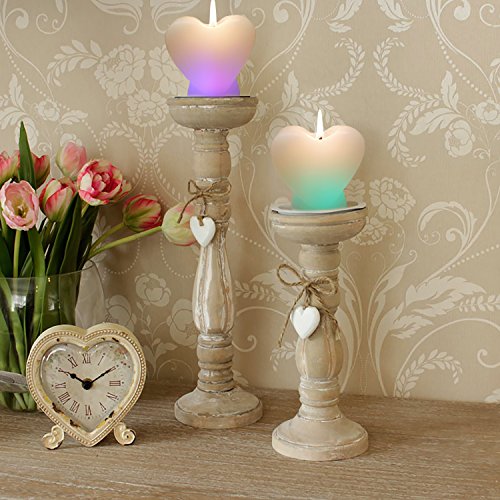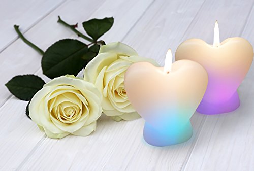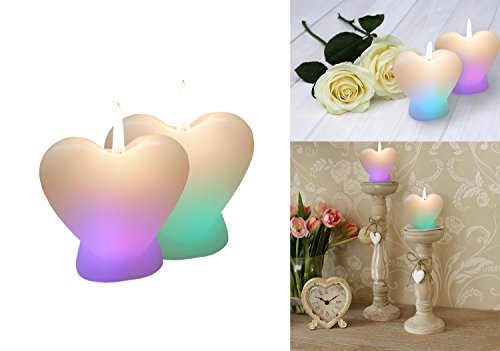 This wax candles (set of 2) are built in heat sensor and will change colors as they burn. These soft burning flame candles measure 4 inches tall and 3 inches wide and burn approximately 8 hours.