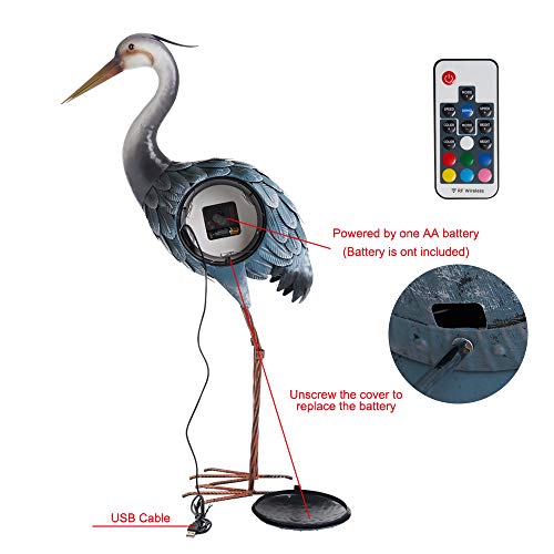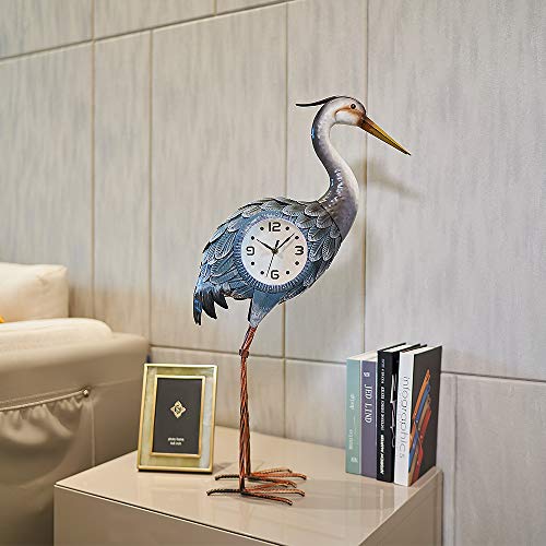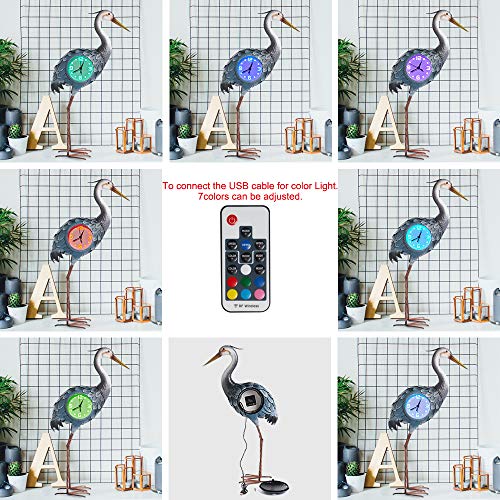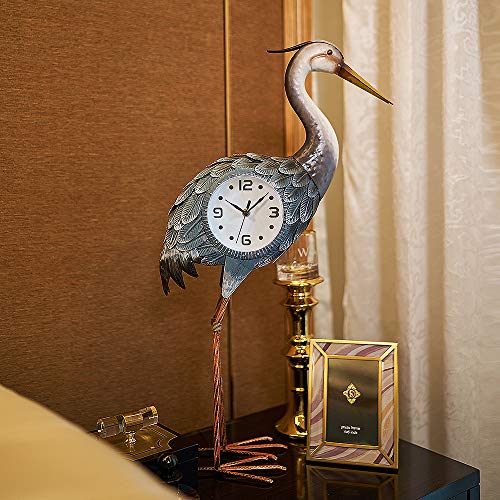 This Crane Sculpture Clock is handcrafted from quality metal and hand-painted with very good detail. This table clock is operated with AA battery and USB to support changeable backlight. The clock has a silent non-ticking mechanism with sweeping movement. You can also change the light via the small remote.