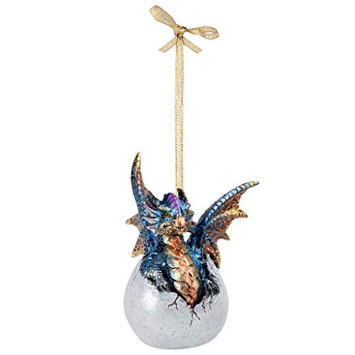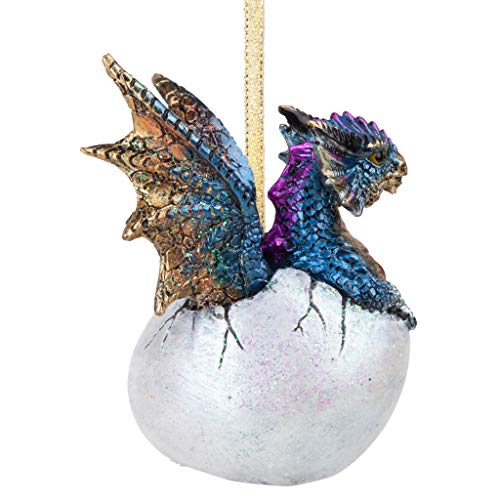This ornament depicts a baby dragon emerging from his egg. With its tiny wings and claws this little fire-breather is a wonderful addition to your Christmas tree ornament or dragon collection.