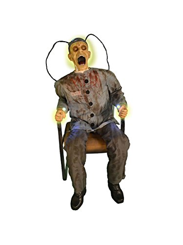 The Electrocuted Prisoner Death Row Prop is a great decoration for Halloween. Fun, spooky, and scary? It has it all! And with a 21L X 17.5W X 19H size, it will fit in any house or apartment. And he lights up with animation and sound.