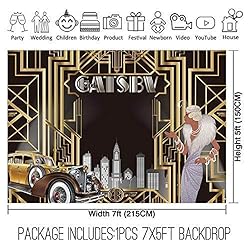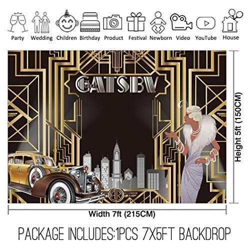 This retro Gatsby themed backdrop is made of environmental-friendly silky Polyester and detailed hand-sewn finished edges. Due to its silky Polyester, it won’t be easy to get wrinkles. So, it is durable, soft, stretchy, thicker than Econ Vinyl backdrop. It can be ironed and washed — Lasting results for years of usage. Machine Washable and Dryer safe.