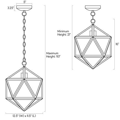 – Chandelier: 16″ (H) x 12.5″ (W) x 11.5″ (L)