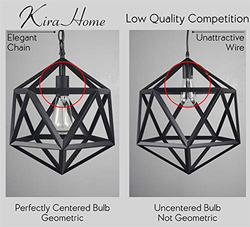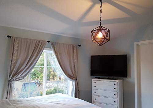 You can hang this prismatic ceiling light in pairs above a kitchen island, over a dining room or kitchen table, or in areas with high/vaulted ceilings such as an entryway or foyer. Dimmer and sloped ceiling are also compatible. This wrought iron fixture has a black finish and 6 feet of adjustable chain to suit your desired hanging lengths.
