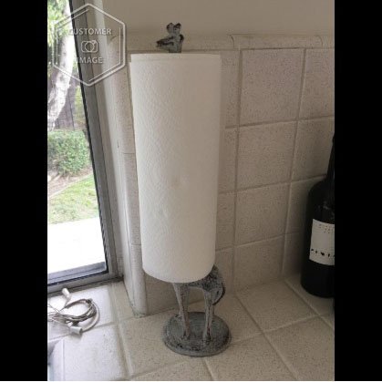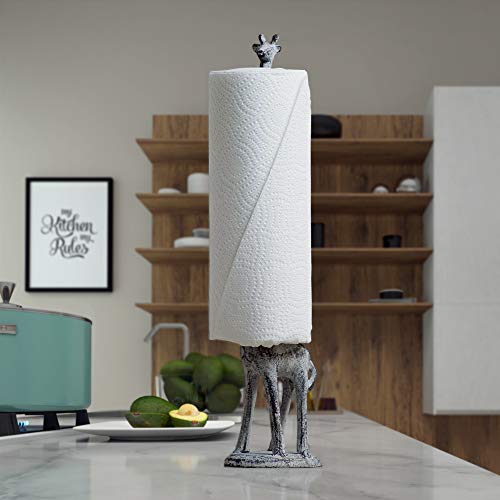 Enjoy gorgeous vintage style for your kitchen or bathroom with this antique cast iron Giraffe Paper Holder. It holds a roll of paper towels securely and this vertical paper towel holder is sturdy and heavy enough to detach paper towels easily with one hand.