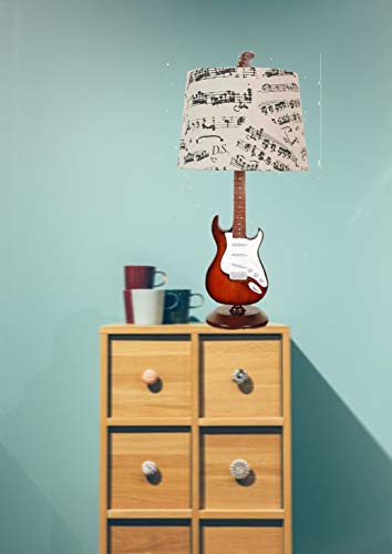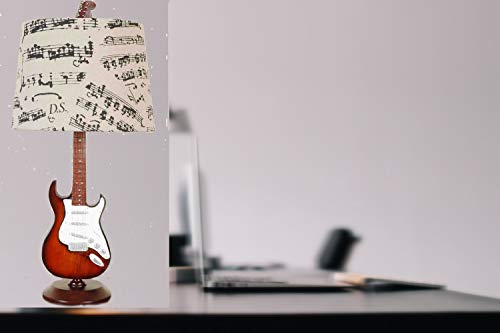 Base is a guitar design and a music sheet shade. The lamp is perfect for home decor. A great gift for any musician or someone special.