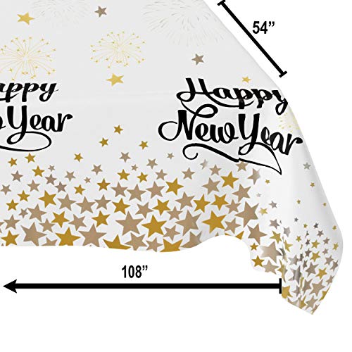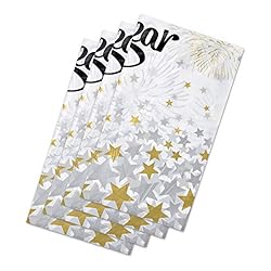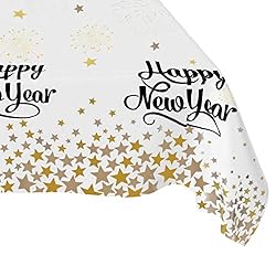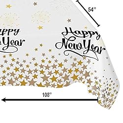 Keep your tables stain-free from spilled wine, juice, or soda, and food items with this pack of 4 holiday themed table covers. It features a plain white table top cover with gold and silver stars with happy New Year’s printed in black. They are light weight, very easy to carry around as part of your New Year party supplies.