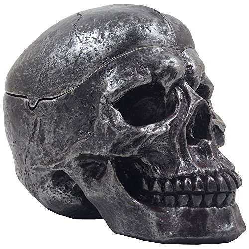 This spooky human skull ashtray can be an additional piece for your Gothic Decor that goes beyond your typical Halloween decoration. Its hollow-eyed skull creates fear and malice, adding diabolical appeal to a unique sculpture that does double duty as a covered ashtray. This spooky figurine serves as a daunting reminder of the dark side that’s definitely not for the light-hearted! It is a great gift for smokers who are collectors of skulls and skeletons or scary Halloween décor.