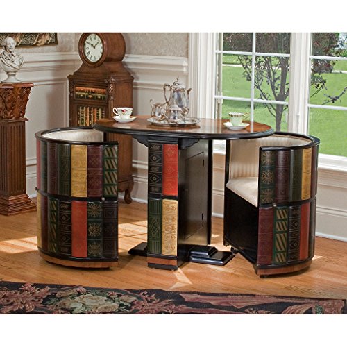 This furniture appears to be a bookshelf but slides apart to reveal a space-saving dining table and two comfy barrel chairs on wheels. So you can enjoy a great spot for quiet reading or for coffee with a friend.