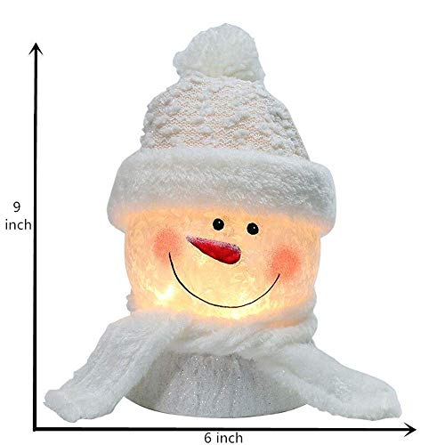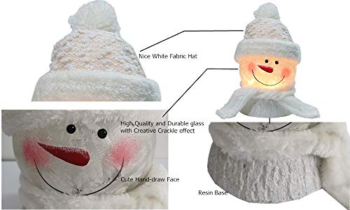 A white hat perches on a beautifully crafted crackle glass snowman head. The snowman’s neck is warmly wrapped with a fabric white scarf, go with the white Santa Claus hat perfect; Inside the snowman lamp is a warm yellow LED light string with 9 LED bulbs and 4 spare bulbs in the pack. It will definitely warm up your holidays. The glass snowman lamp is very energy efficient.