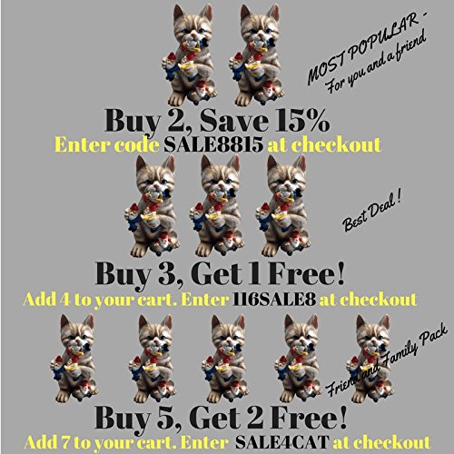 This Statue is handcrafted and made from durable resin material. It is big enough to be noticed but small enough to fit on a bookshelf. Perfect size for many locations. This cat sculpture eating gnomes can guarantee to make the number of gnomes in your garden greatly decrease.