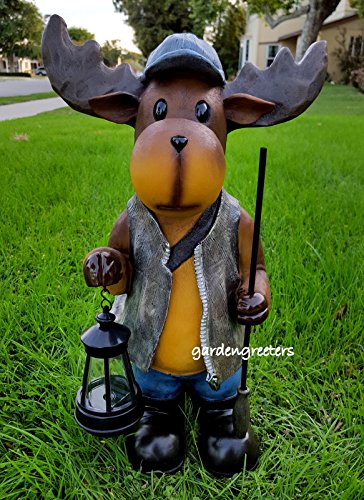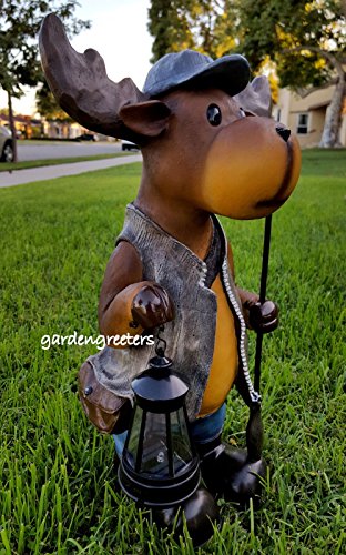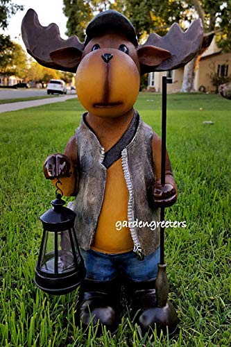 This Moose with Solar Lantern will entertain everyone at your home and garden. It is good for indoor/outdoor decors with UV protection sealed. The Figurine is made of Polyresin and hand-painted finish. The Solar Light will light up at Night/Dark for 8 hours with fully recharged during the day.