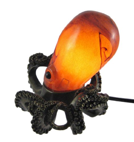 Bring an undersea mystery into your home and shed some light on your decor with this unique octopus lamp. This Octopus lamp can change colours like what octopuses are known to be. Its colorfully swirled glass shade (Blue, Green, Orange and Yellow) offers the wonder of these sea creatures. This lamp is an eye-catching piece and will glow by night.