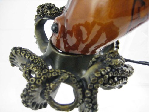 The shade sits on a resin base intricately sculpted to look like curling tentacles and hand painted in an antique bronze finish to complete the look.