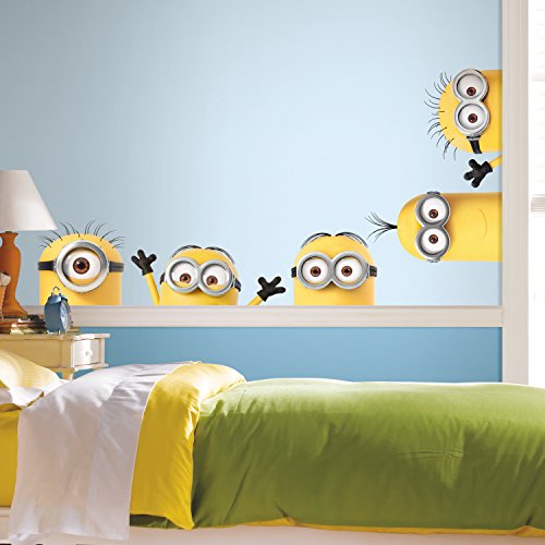 Give any room a quick makeover with this Peeking Minions wall decals and create an accent wall to bring characters to your home spaces. This Peeking Minions are also great for wall art, gallery walls, furniture, tables, doors, bookshelves and more. The wall decals are printed on high quality vinyl and are backed with peel and stick technology. It is ready to use; simply peel off the backing and stick to any smooth, clean surface. No tools are needed. Use hand to secure into place. To remove, peel from the wall. They won’t damage walls or leave a sticky residue behind, so you can remove, reposition and reuse over and over again.
