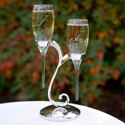 This stunning pair of toasting flutes is perfectly prepared to celebrate Anniversary or New Year’s Eve for any couple. The Nickel-plated stand with rhinestone accent. Stand is 8.25 Inch tall; flutes are 9 Inch
