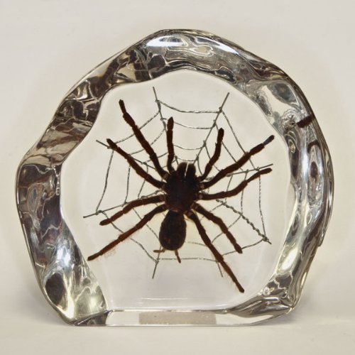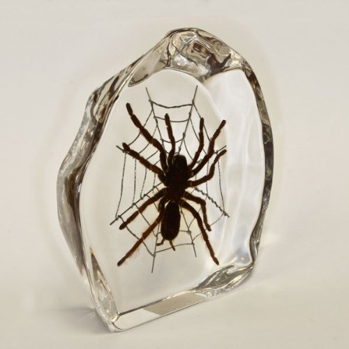 Want to scare your friends? Or Want to create a quirky display for your desk decoration? Get this REAL tarantula that comes suspended in an indestructible attractive clear acrylic display with a wire web in the background. This is great for your creepy collection. Display measures 4.75 inches wide, 4.5 inches tall, 1.25 inches thick.