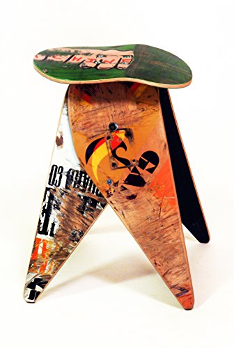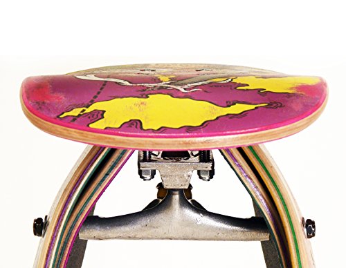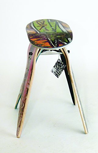 Expertly crafted from real broken skateboards collected from skateparks and skateshops across the USA. Superior workmanship, design, and quality is guaranteed. Super strong and surprisingly comfortable, the stool is held together by a skateboard truck.