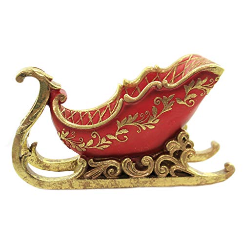 Make a great addition to your Christmas decor with this Red/Gold Roman Sleigh Container. It can be used as a shallow container or for decoration and it features an ornate golden base. This unique container is made from Polyresin.