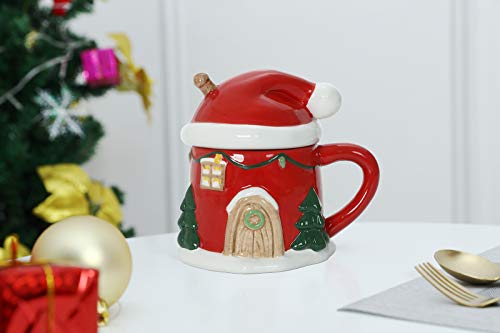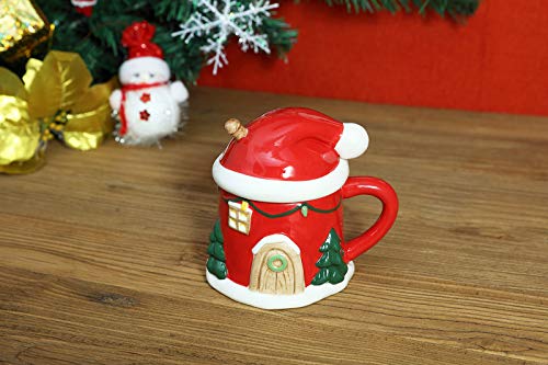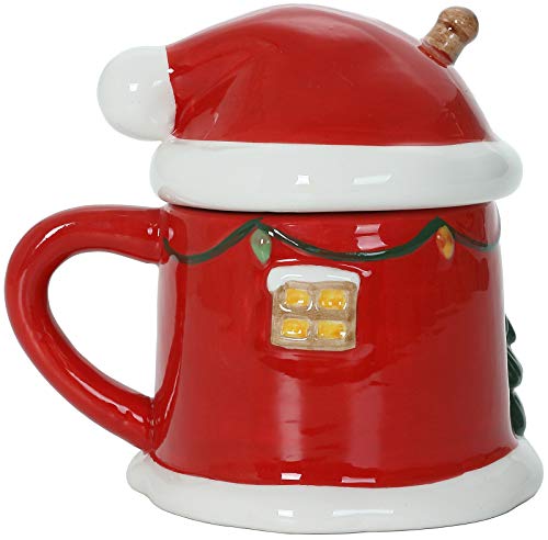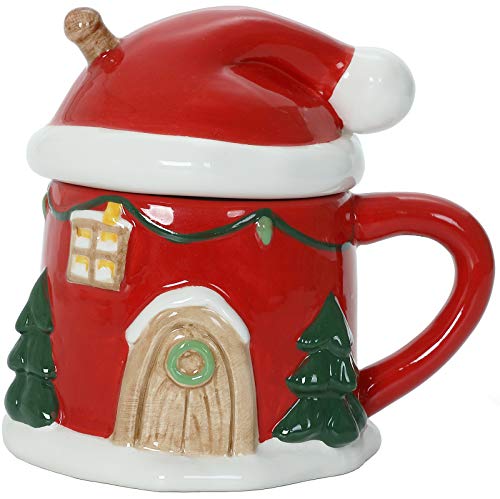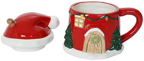 With a 12 oz capacity, this specially crafted mug is in the shape of a red Christmas home with a lid in the shape of a Christmas hat. All details were delicately hand painted, making this truly a special holiday treat!