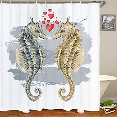 The love seahorse shower curtain is highly unique and perfect for bathroom decor. It provide both privacy and decorative appeal at the same time. The curtain is especially perfect for creating a romantic atmosphere on Valentine’s Day.