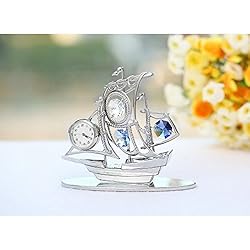 Keep track of your busy schedule with style! This beautiful, vintage-style boat décor pieces features a built-in analog clock, elegant crystals and a chrome plating that combine to give you a gorgeous, decorative piece for your living space, desk, office and anywhere else. So, it is the perfect size for any interior design motif, home decor or collection! You can place it on your desk or hang up this stunning piece by the window.