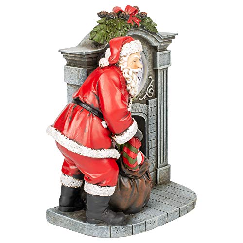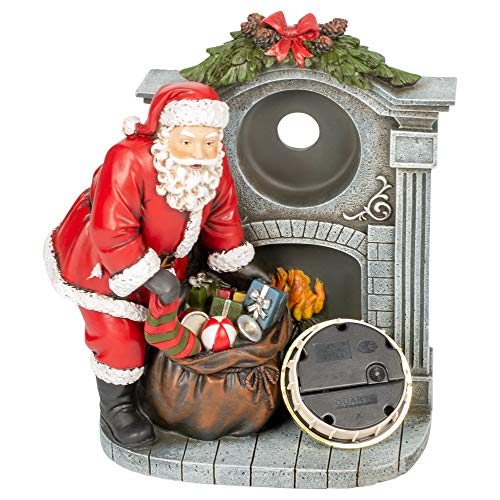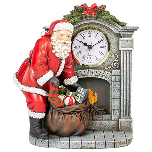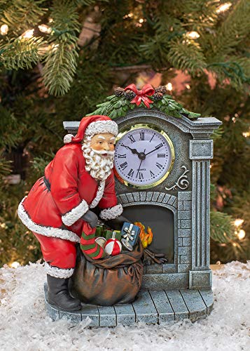 This approximately 8.25 inches Clock Figurine depicts Santa with a big bag full of toys standing in front of a decorative fireplace with clock. Perfect for displaying on any table, mantel or shelf in your home this holiday season.