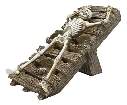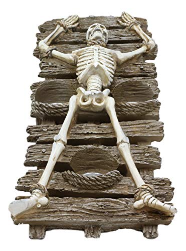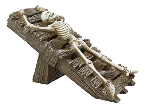 This satanic cult sculpture of human sacrifice will send chills down your spine! A deceased human reduced down to the bones in the form of skeleton was once tied down to the racking platform and bled to death in the full moon. Imagine the stench, horror, pain and ruthless evil in the Black Mass!