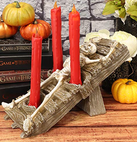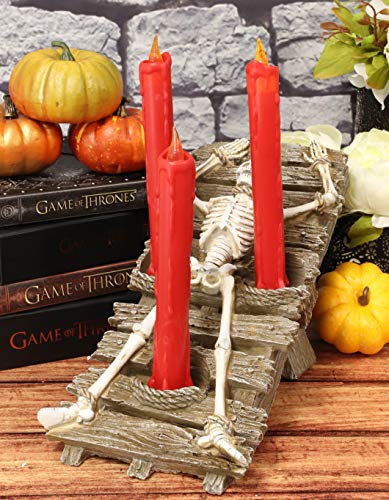 This Skeleton Black Mass Ritual Sacrifice Trio Candle Holder Sculpture is made of designer composite resin, hand painted and polished.