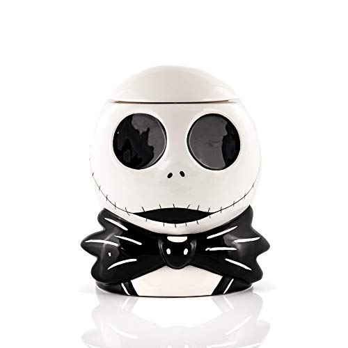 The jar is molded and painted black & white to resemble Jack Skellington from Tim Burton’s claymation classic. It’s a great gift for yourself or a friend and looks perfect in an office, kitchen or at a party.