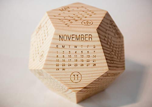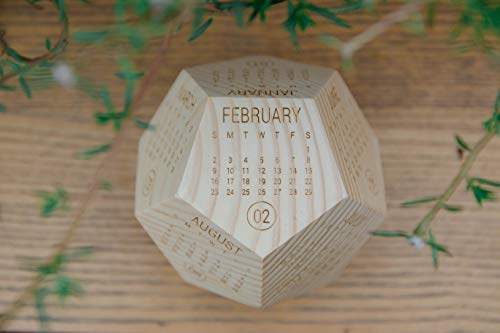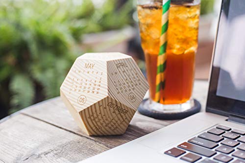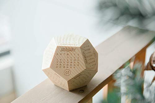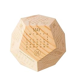 This unique wooden calendar 2020 is made from solid pine with laser engraved number. The color is durable. Each side features a different month (12 months in total). Its size is 3.15in x 3.4in x 3.4in and 0.55 lb. — a perfect size for a home and an office desk since it won’t take too much space on your desk.