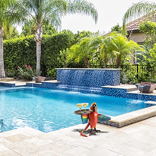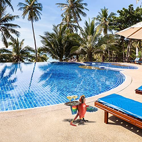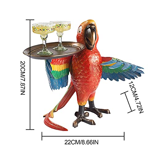 Made from durable sand-cast aluminum hand-painted in rainbow of colors with bronze beak, feet and tray this designer resin parrot will help make your vacation dreams come true all year long! Dimensions: 15x7x9cm,22X12x20cm (The cup is not included).
