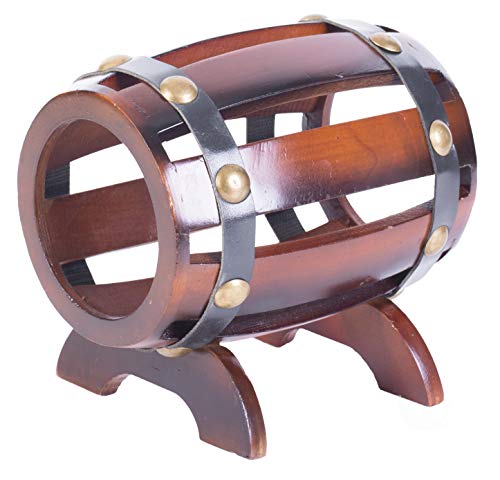 Complete the decor of your room with this vintage barrel shaped wine holder. Composed out of durable wood material, this wine holder offers durability and practical function for continual use. Vintage wooden designed base and barrel shape will add a decorative appeal to your room decor. Use this wine holder to store a wine bottle and as a centerpiece display to keep wine handy.