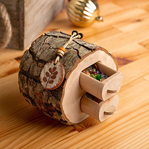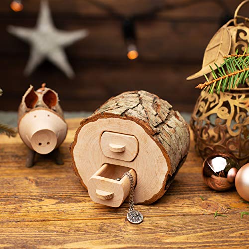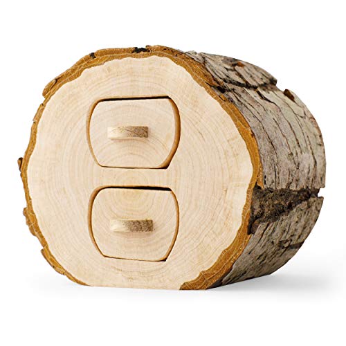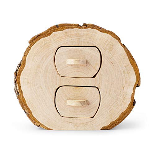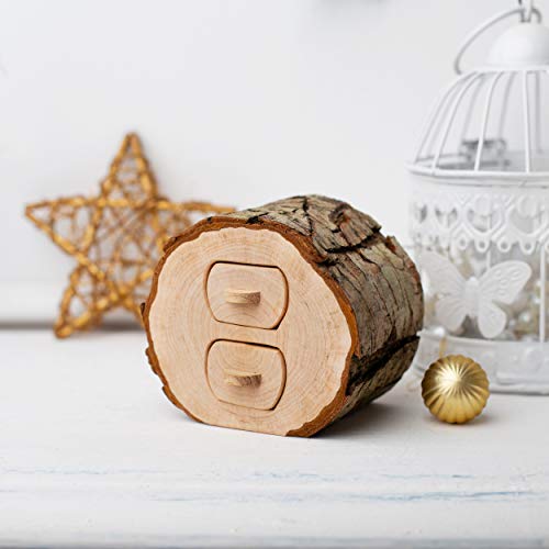 This storage wood box with two small drawers features unfinished bark edging for a vintage look ladies love. Each tiny jewelry box features small drawers with handles that let you slide them in or out with ease to store your personal items quickly. Perfect for rings, earrings, necklaces, or other small knick knacks, this wood jewelry box keeps things organized with true style.