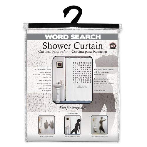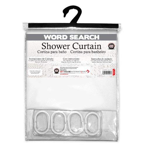 Bring a good clean fun and beat boredom with this word search shower curtain by unscrambling the wash words from the puzzle. This 180x180cm shower curtain is made of 100% PEVA and it is also waterproof as well as stain proof and non-toxic odour. Machine washable at 30 degrees. 12 rail hooks are included.