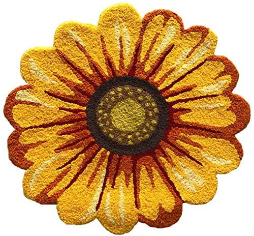 This beautiful Yellow Sunflower Rug is made from high quality acrylic. It has non-slip bottom which is made with non-woven plastic dot non-slip bottom fabric, dry and breathable, in line with environmental requirements. This anti-skid backing has practically slip resistance on the floor surface. You can feel secure having our product in your home. The soft micro fibers with about 8mm thickness are so soft and odorless. The rug has perfect bound stitched edges.